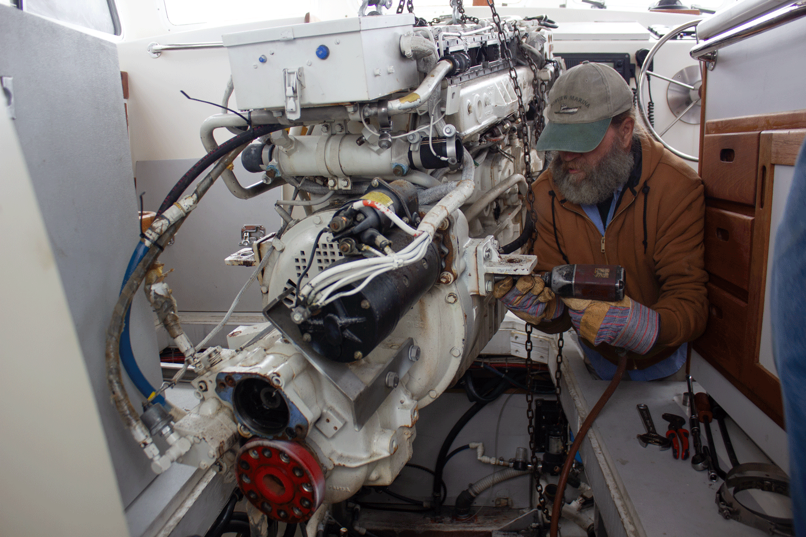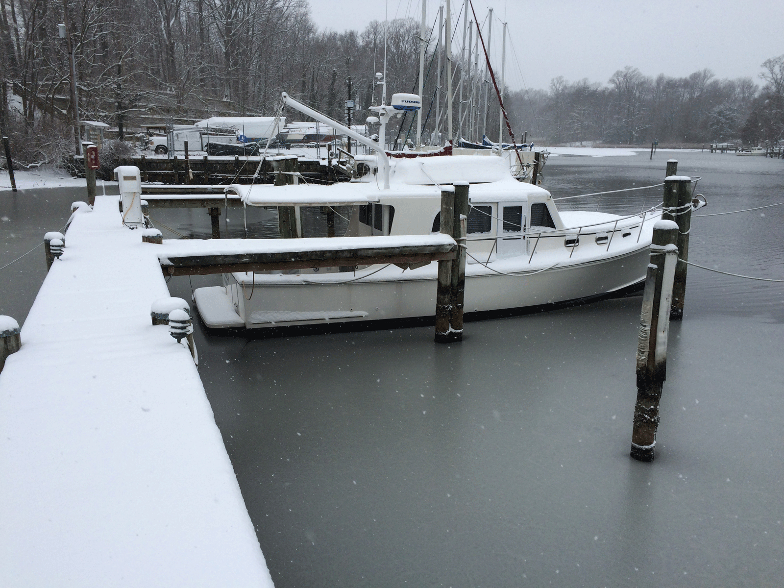 This year was dedicated to two projects; going on the road to visit potential builders of our next, still unnamed boat, and getting Merluza ready for sale. She spent months at Zimmerman Boatyard in Deltaville MD undergoing a complete refit. The engine was removed to rebore and sleeve the cylinders, the transmission was rebuilt, new engine mounts, new water heater, helm door and many other items. Merluza was officially put up for sale in December, survived a cold winter in Annapolis, and sold in May 2015.